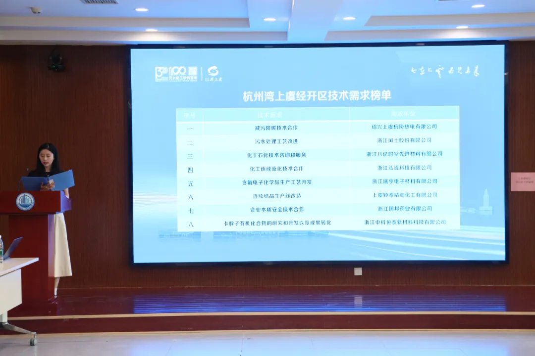 在经开区共性技术需求榜单发布环节,来自闰土、颖泰、瑞亨等多家企业的代表依次发言,提出了涵盖减污降碳、本质安全、连续结晶生产线改造、含氟电子化学品生产工艺开发等多个领域的 8 项共性技术需求。企业代表们详细阐述了各自企业在生产经营过程中面临的技术难题、对产品升级的迫切需求以及在未来发展战略中的技术创新方向,并表达了与天津大学专家开展深度合作的强烈意愿。发布结束后,企业代表与天大专家迅速展开交流,双方就技术难题解决方案、合作模式、成果转化路径等问题进行了深入探讨,现场碰撞出诸多合作的火花,不少企业与专家达成了初步合作意向。