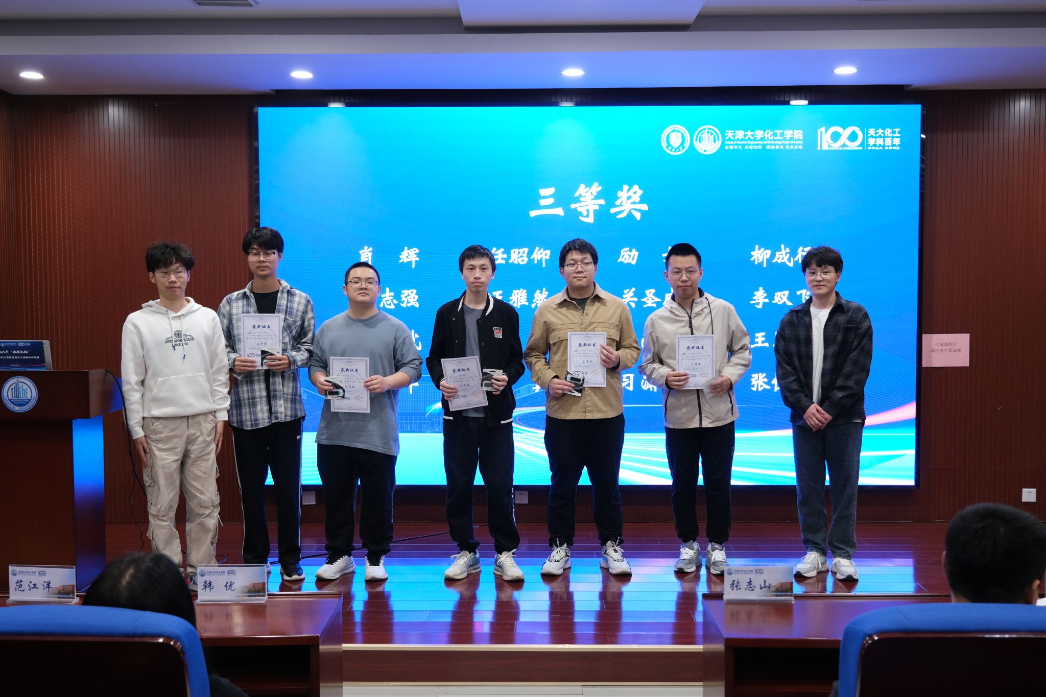 4月21日晚,2025年“欧倍尔杯”天津大学化工学院首届化工实验知识竞赛颁奖仪式顺利举行。化工学院副院长韩优,北京欧倍尔软件技术开发有限公司大区经理张志山,化工学院团委书记赵书航,本科生辅导员段敬旭、石宪出席本次活动。仪式由化工基础实验中心主任范江洋主持。