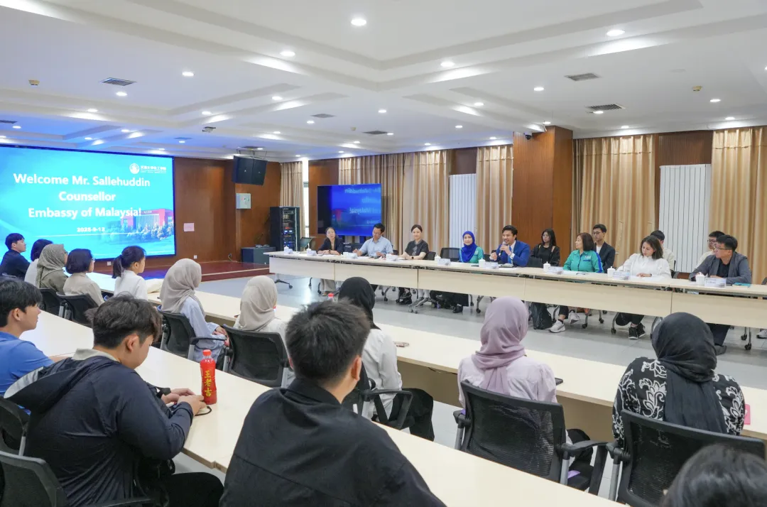 会见结束后,化工学院组织了教育参赞沙烈胡丁先生与马来西亚留学生专场座谈会,黄守莹副院长主持会议,国际合作与交流处张玲处长、国际教育学院李锵院长、化工学院汪怀远书记、UMPSA教师、Yayasan Daya Diri基金会负责人等一同参会。