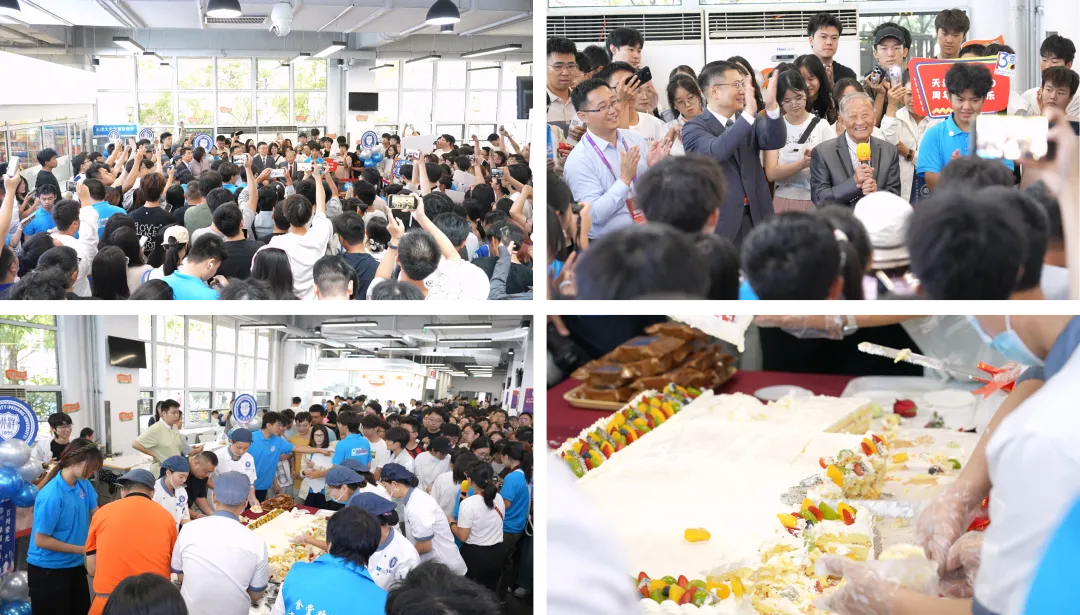 中午,校友们齐聚学一食堂(梅园),分享校庆欢庆蛋糕,畅谈往事,笑语不断,场面温馨感人。