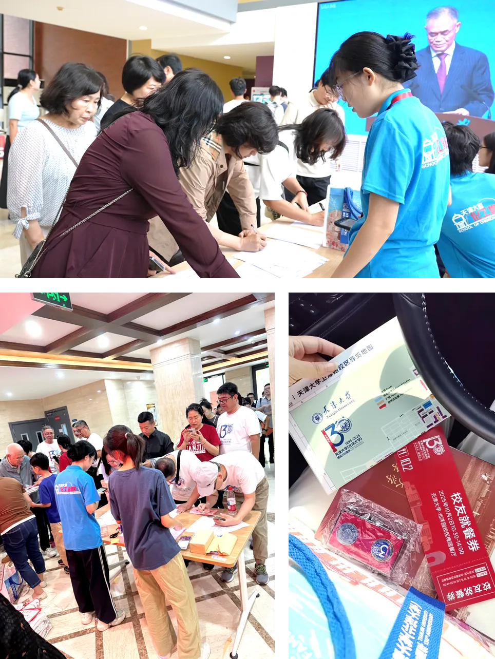 10月1日上午起,化工学院在新校区(北洋园)50楼及老校区(卫津路)分子+研究院11楼同步设立校友报到点,为返校校友提供身份认证与校庆专属纪念品领取服务。校友们热情洋溢步入校园,秩序井然,气氛温馨。