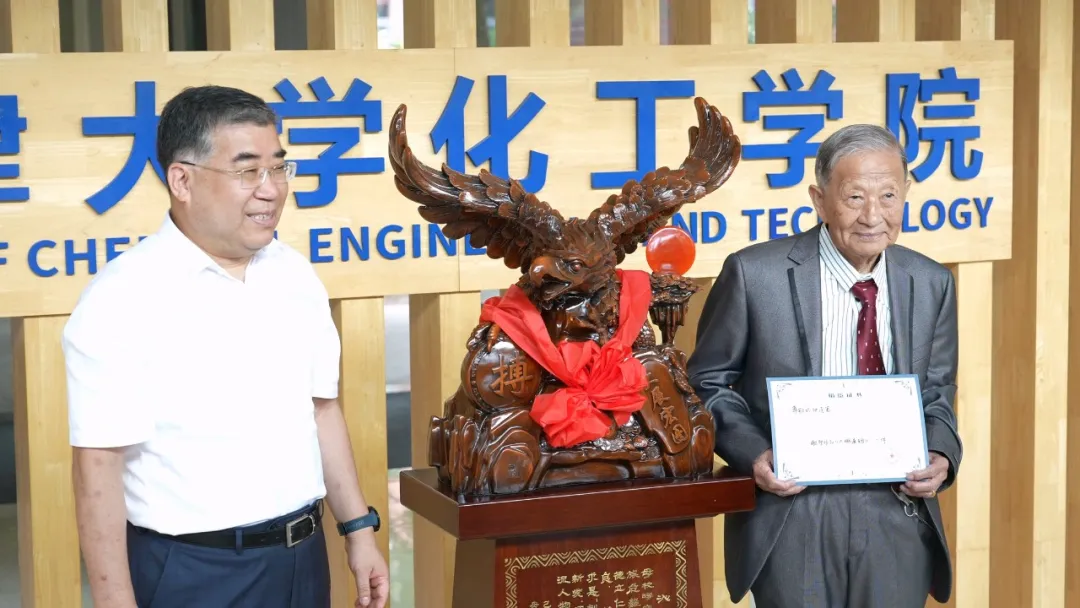 10月2日校庆日当天,化工学院在新、老两校区同步举行了情意深重的捐赠活动。上午9时,“张连第校友捐赠《大展宏图》雕塑仪式”在北洋园校区50A332报告厅隆重举行。化工学院1961届高分子工学专业校友张连第与1981级校友王子宗共同为雕塑揭幕。该雕塑以雄鹰展翅为主题,寓意化工学院宏图大展、勇攀高峰。学院党委副书记李晶主持仪式,对张连第校友的慷慨捐赠与深厚情谊表示衷心感谢,并承诺学院将秉承“实事求是”的校训,持续推进高质量发展。