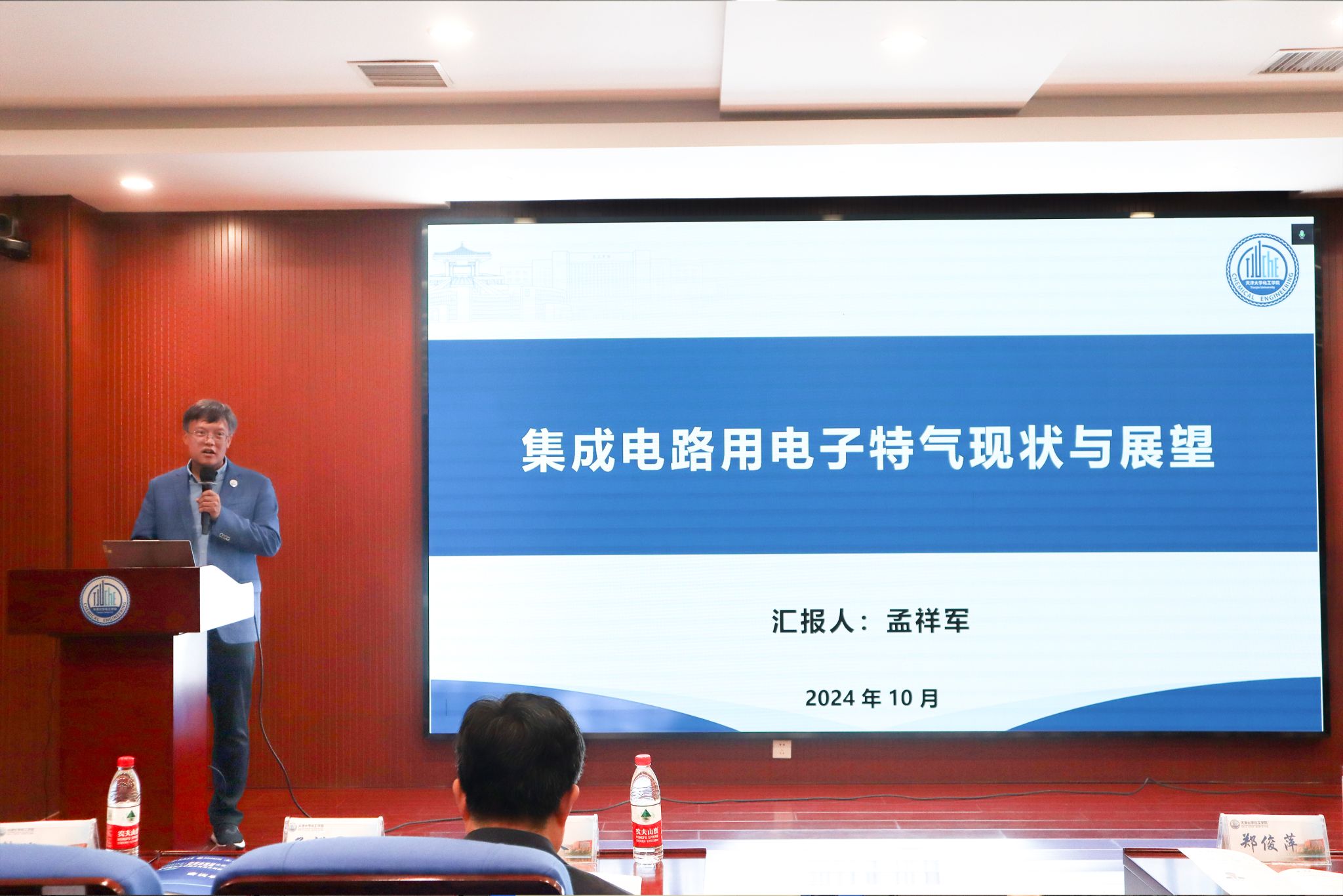 随后,化工学院在读专业型博士生,中船(邯郸)派瑞特种气体股份有限公司总经理、党委副书记孟祥军带来题为《集成电路用电子特气现状与展望》的报告,围绕国家集成电路产业的发展需求及高纯电子级气体关键前沿技术展开介绍,特别是企业推动超高纯度氘气生产技术成果的转化与应用,解决了氘气国产化技术“卡脖子”难题,显著降低了生产成本,以来自产业一线的实际问题和攻关经历,为学术研究提供了新的视角和方向。