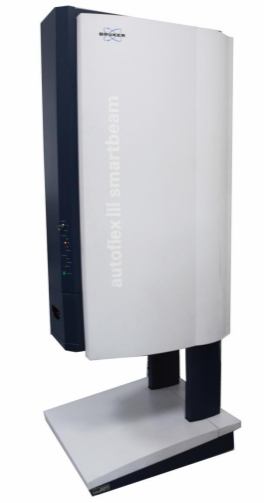 基质辅助激光解吸电离串联飞行时间质谱仪(Matrix assisted Laser Desorption Ionization Time-Of-Flight Mass Spectrometry),简称MALDI-TOF。MALDI的原理 是用激光照射样品与基质形成共结晶薄膜,基质从激光中 吸收能量传递给生物分子,而电离过程中将质子转移到生 物分子或从生物分子得到质子,而使生物分子电离的过 程。因此它是一种软电离技术,适用于混合物、生物大分 子及聚合物的测定。